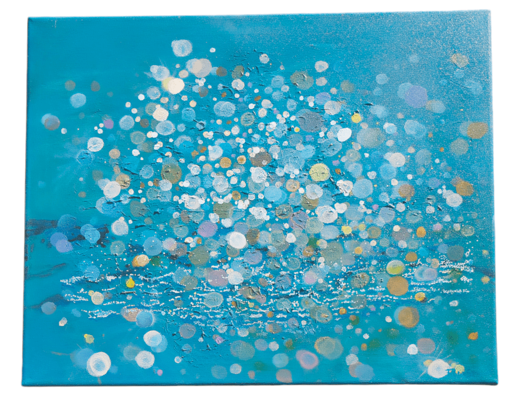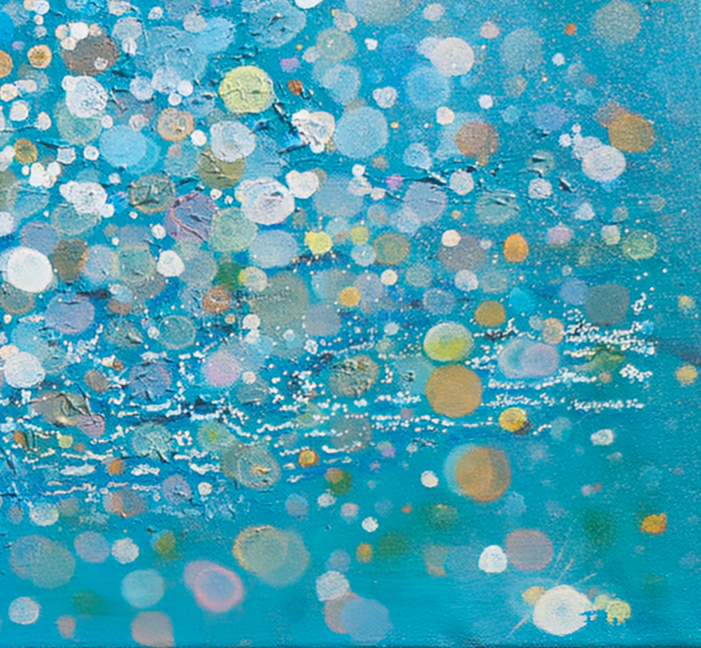Die Struktur und das Spiel mit den verschiedenen Größen der Bokeh-Effekte verleihen dem Bild Tiefe und schaffen eine schöne visuelle Dynamik. Es fängt die Essenz von Wasser und Licht ein – sehr atmosphärisch und beruhigend!